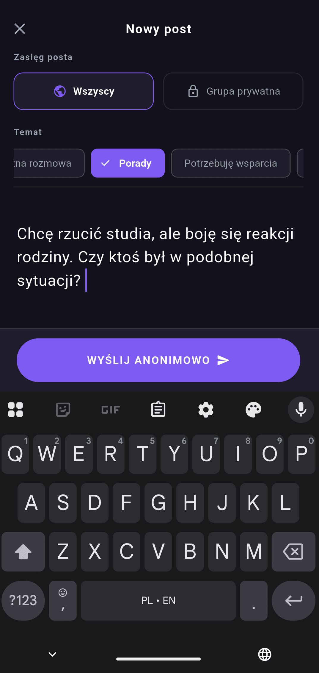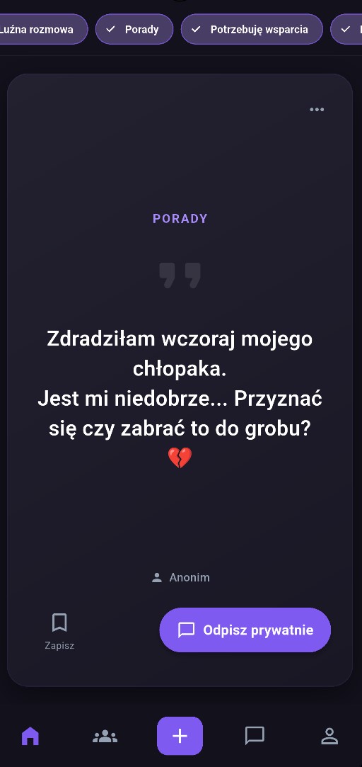 Dziel się myślami, sekretami i wątpliwościami bez lęku. Twoja tożsamość pozostaje w cieniu - zawsze.